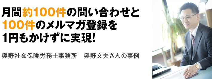 そして今回は、奥野さんのように1円もかけることなく大量の問い合わせを獲得したいという方のためにセミナーを開催します。